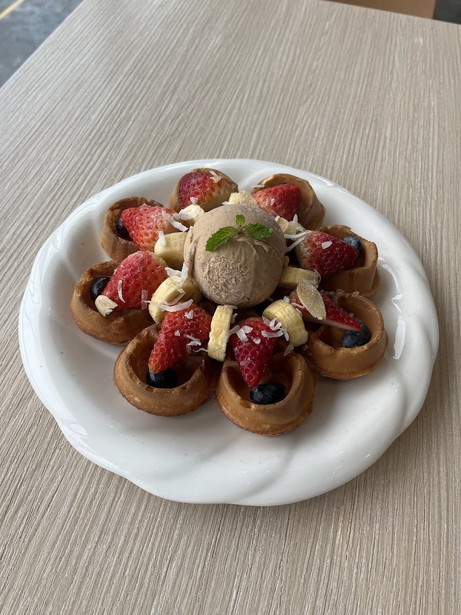 Nice and relaxing ambiance with a great view of the golf course. The waffle is slightly crispy but still enjoyable overall.