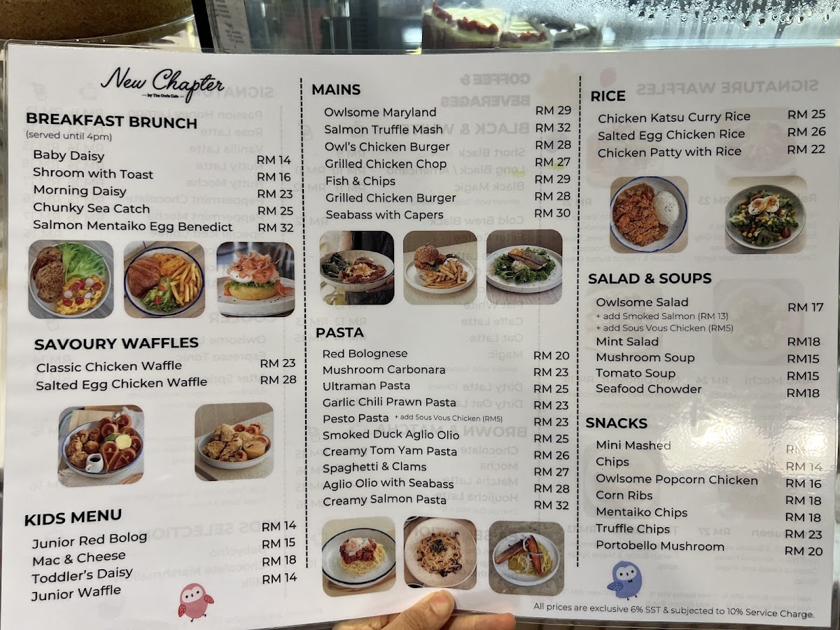 Introducing "New Chapter by The Owls Cafe," located at the serene Calvary Convention Centre in Bukit Jalil, Kuala Lumpur. This hidden gem offers a delightful escape with a cozy ambiance and sweeping views of the adjacent golf course. Upon entering, you're greeted with warm, attentive service that sets the tone for a memorable dining experience.