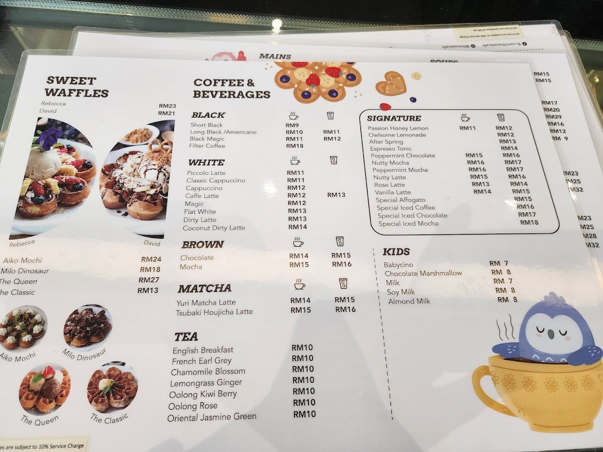 The menu features an array of delectable dishes, including the celebrated duck pasta and the delightful "Owlsome Maryland" chicken served with truffle creamy mashed potatoes. However, the star attraction remains the waffles, loved for their crispy exterior.